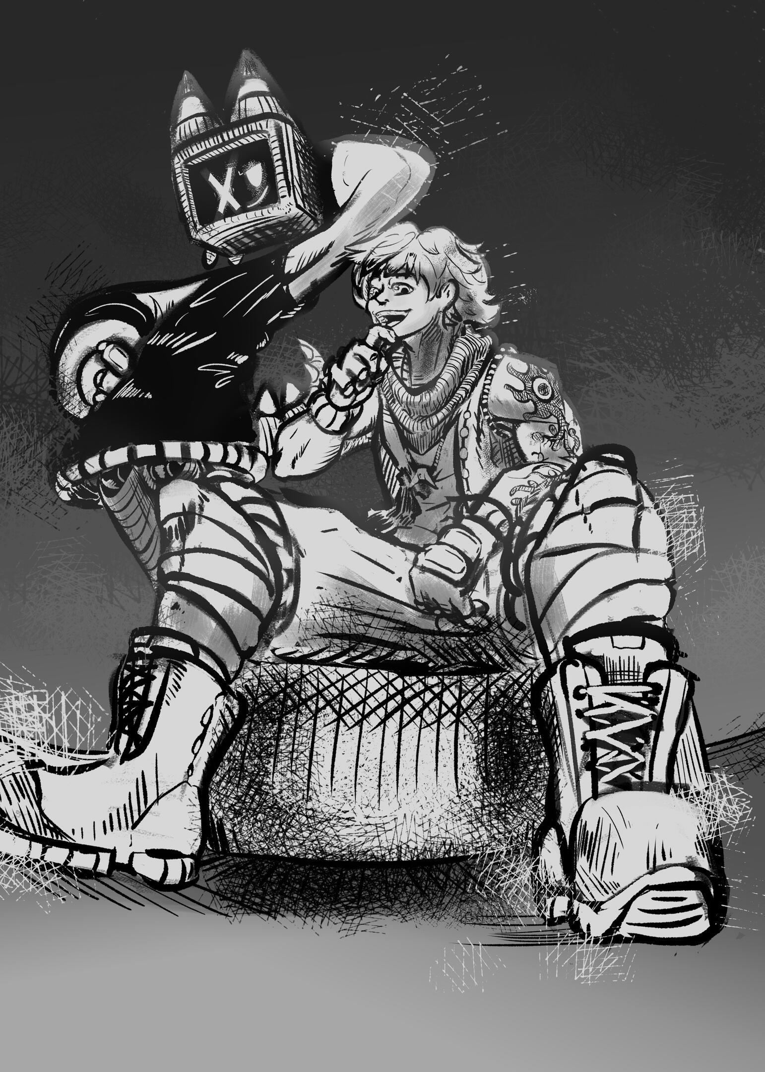 Hi! I draw expressive characters with an ink-focused style.Take a look at my work or reach out if you're interested in a commission.